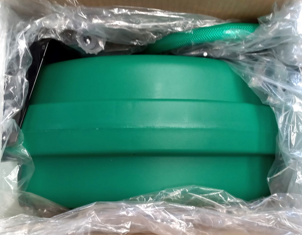 - Green polyurethane garden hose for durability, flexibility in cold weather, and resistance to weathering, abrasion, oil, and kinks