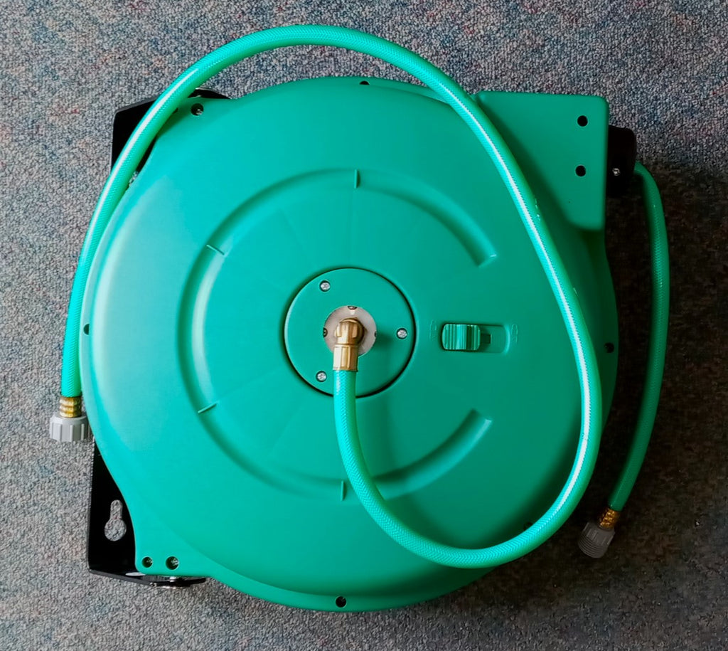 - Ready-to-mount closed hose and reel assembly for commercial, industrial, and home applications