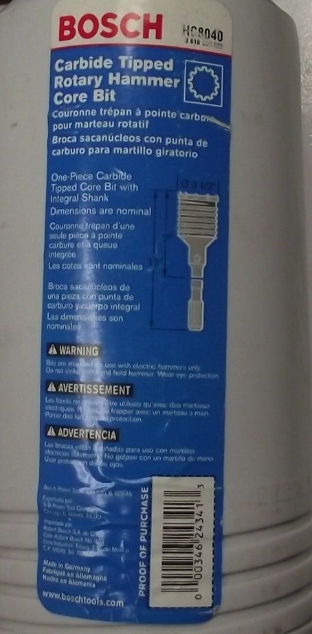 BOSCH HC8040 Spline Core Bit With Shank 3-1/2" x 12" Long Germany