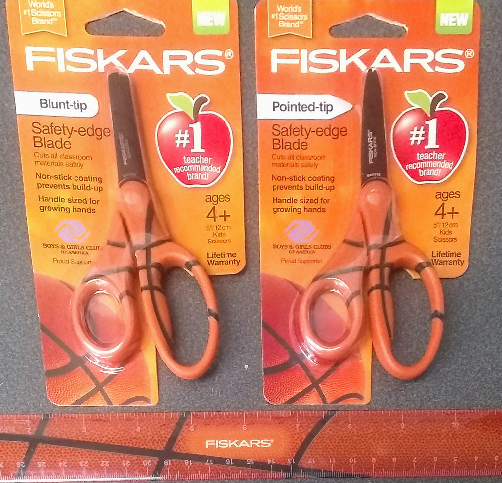 Children love MVP Non-stick Blunt-tip Kids Scissors because their handle features special textures and colors that remind them of their favorite sport. A contoured handle accommodates both right- and left-handed users, while non-stick blades make it easy to cut sticky classroom materials. Like all Fiskars kids scissors, MVP Non-stick Kids Scissors feature innovative safety-edge blades to help make cutting safer, plus a larger finger loop and an ergonomic thumb loop to provide a natural fit for kids’ fingers.