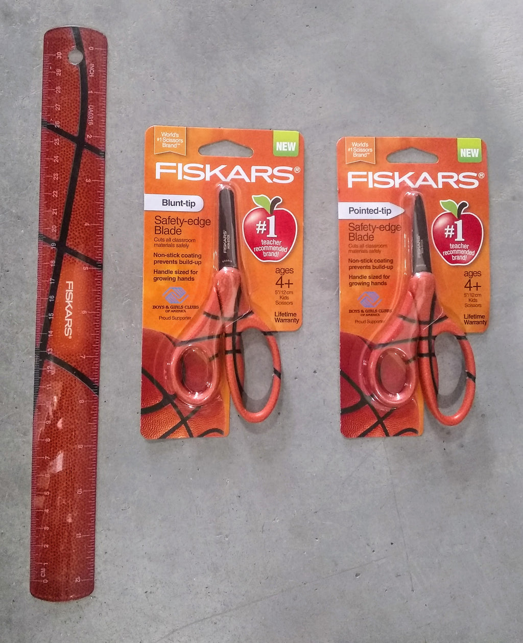 Fiskars 134162 Basketball MVP 5" Kid's 3-Piece Scissors & Rule Set