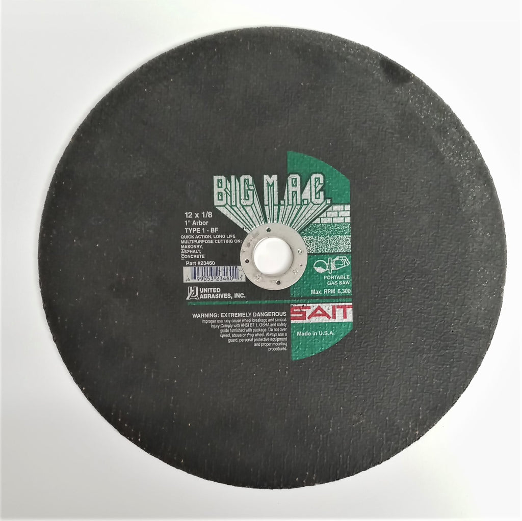 United Abrasives 23460 Sait Big MAC 12" x 1/8" x 1" Type 1-BF Masonry Cut Off Wheel USA