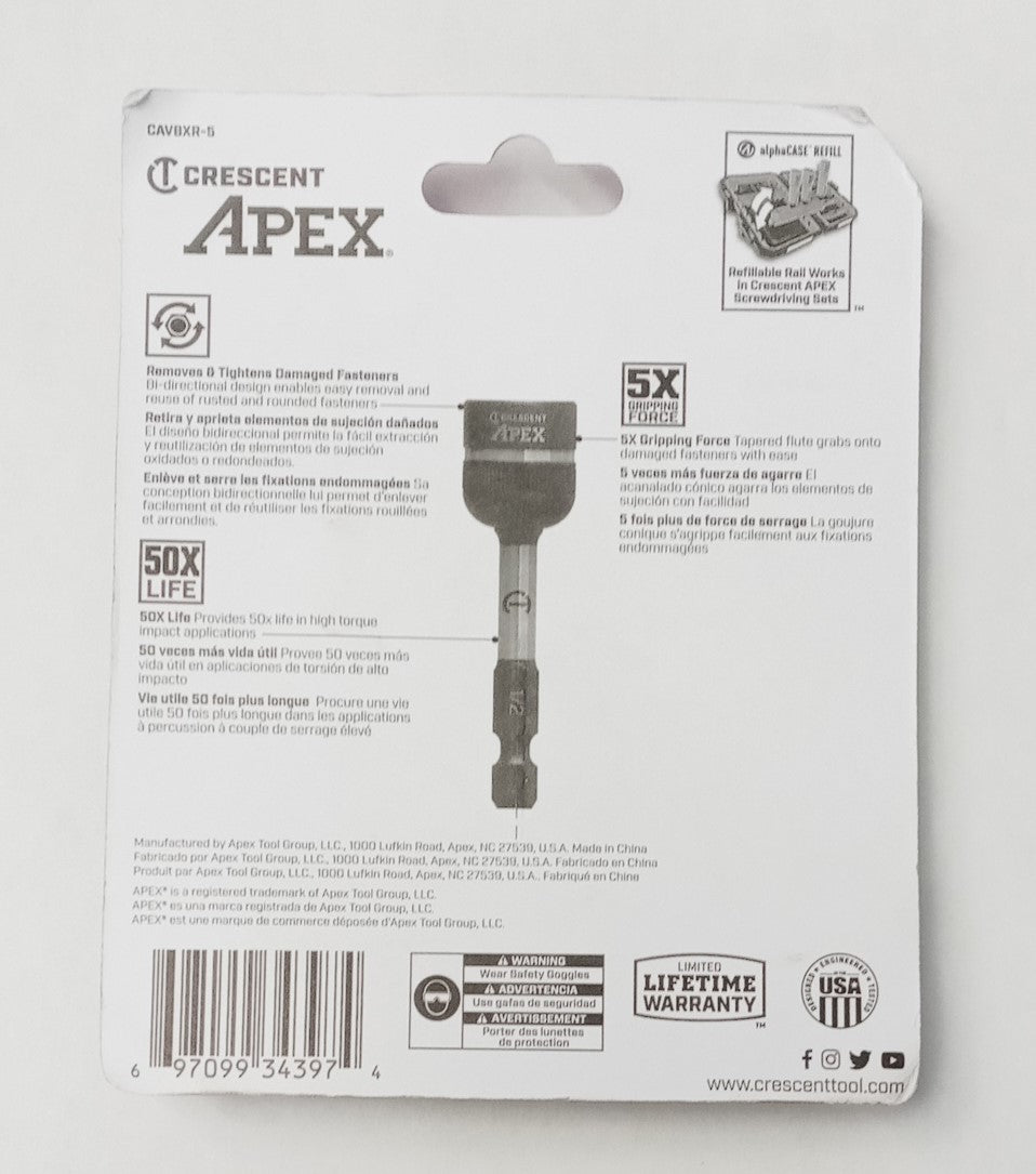 Crescent Apex 5 Pc Impact Nut Extractor And Driver Set CAVBXR-5