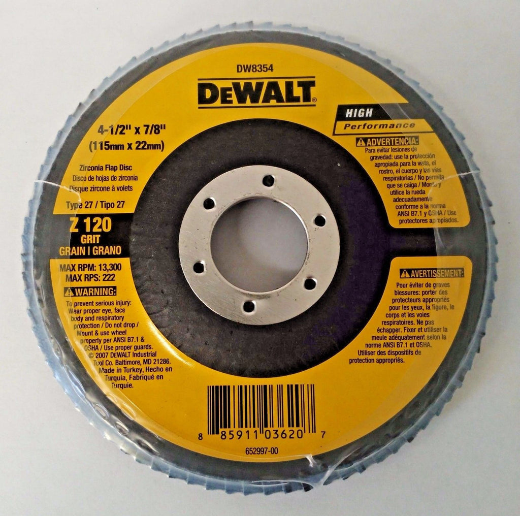 DeWalt DW8354 4-1/2" x 7/8" Zirconia 120 Grit Flap Disc 1pcs. *