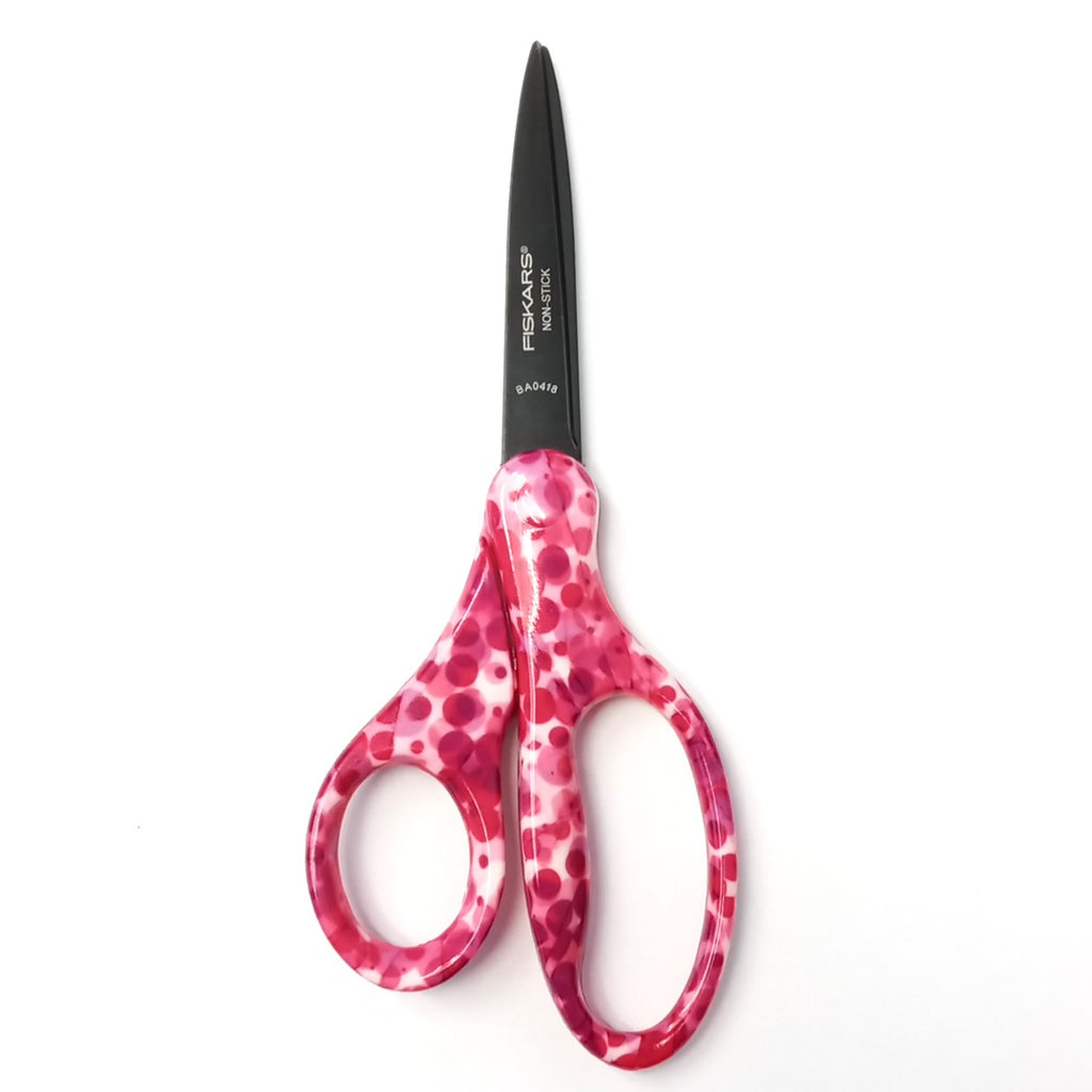 Fiskars Student Decorated Non-Stick 7" Precision-Tip Scissors are designed with big kids in mind. These student scissors are larger than small children’s scissors but are not as large as adult scissors, making them the perfect choice for older children. The brightly colored handles feature fun designs and the blades provide a unique non-stick coating that prevents them from sticking to messy adhesives like glue and tape. The sharp, stainless-steel blades are designed for multi-purpose use and the precision tips easily allow for detailed cutting.