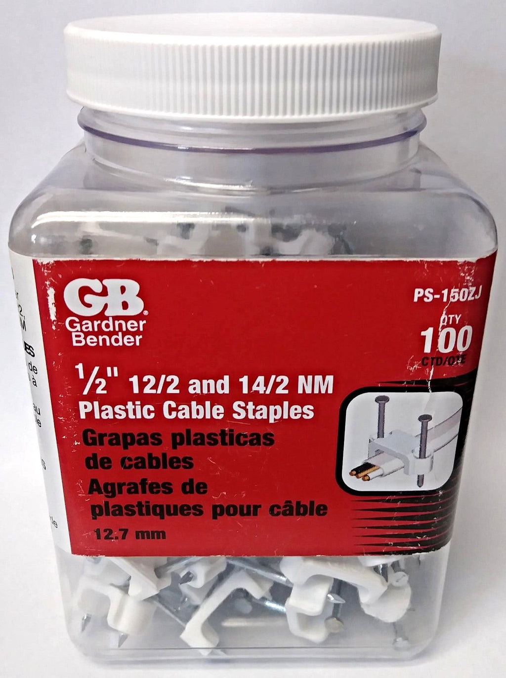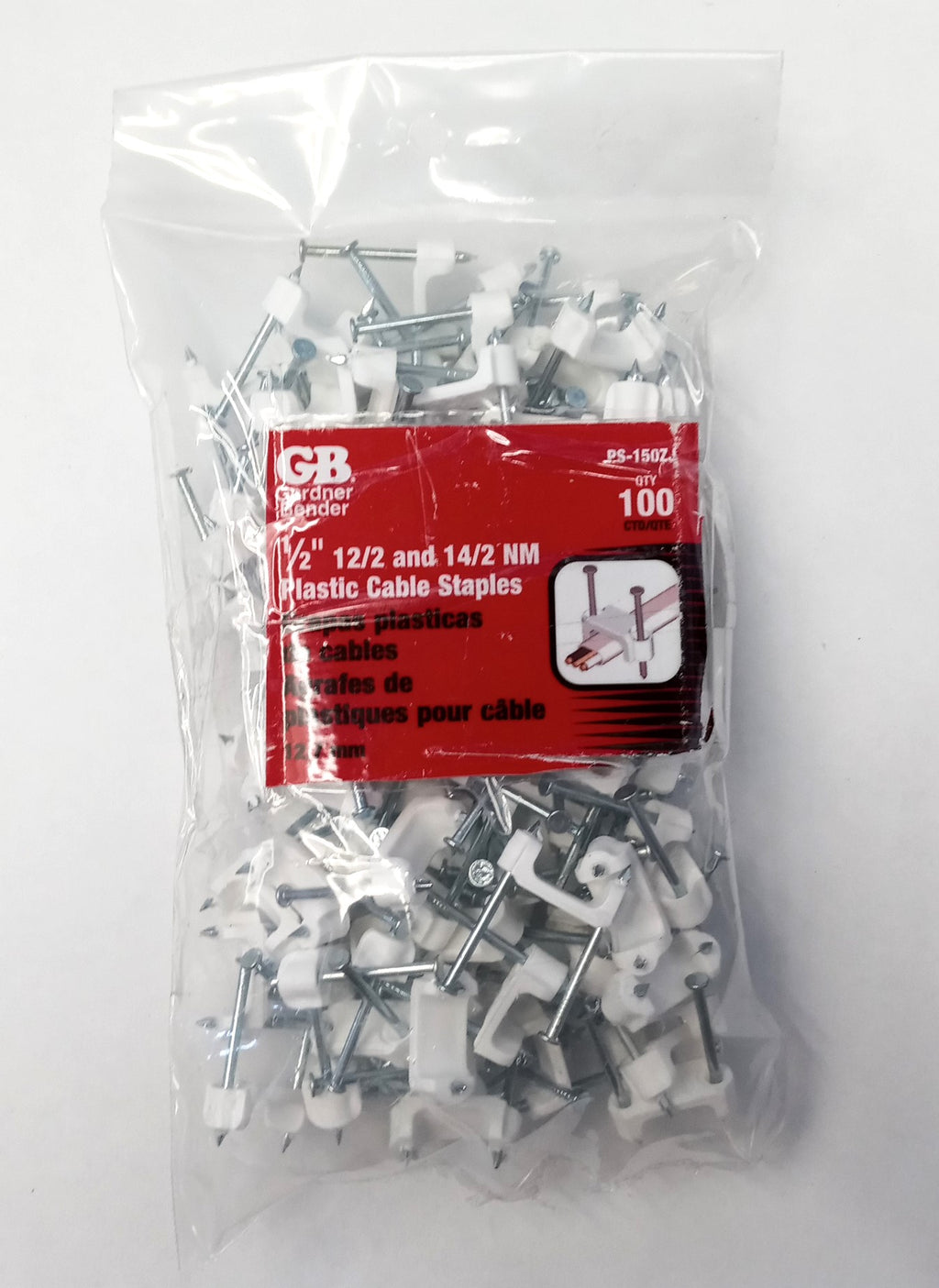 These polyethylene staples with zinc plated nails are designed to offer fast and easy installation when securing most types of non-metallic cables. The zinc plated nails not only resist rust and corrosion but drive together for fast installation with a hammer while the recessed heads ensure minimum exposure and avoid snags. The smooth polyethylene saddle protects wire and will not rust, rot, or deteriorate. Use to attach all NM cable to joists, framing, and other wood installations.