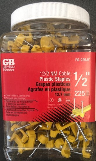 Gardner Bender PS-225JY ½" Cable Plastic Staples 225 Pieces USA
