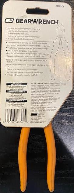 GearWrench 7” Pitbull Diagonal Cutting Plier Dipped Handle PN: 82183-06