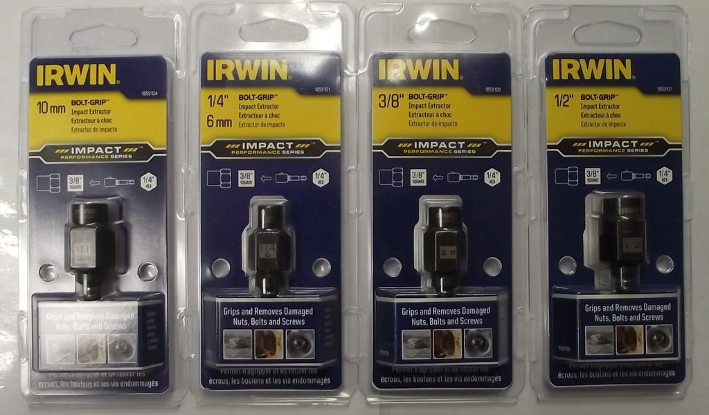 Irwin 1859103 4pc Bolt-Grip Bolt Extractor 3/8" Drive Alloy Steel 1/4" Hex USA