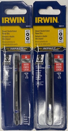 IRWIN 1882429 Insert Bit Impact Double Ended 1/4" Hex #2 #3 Square Drive 4" Long 2pcs.
