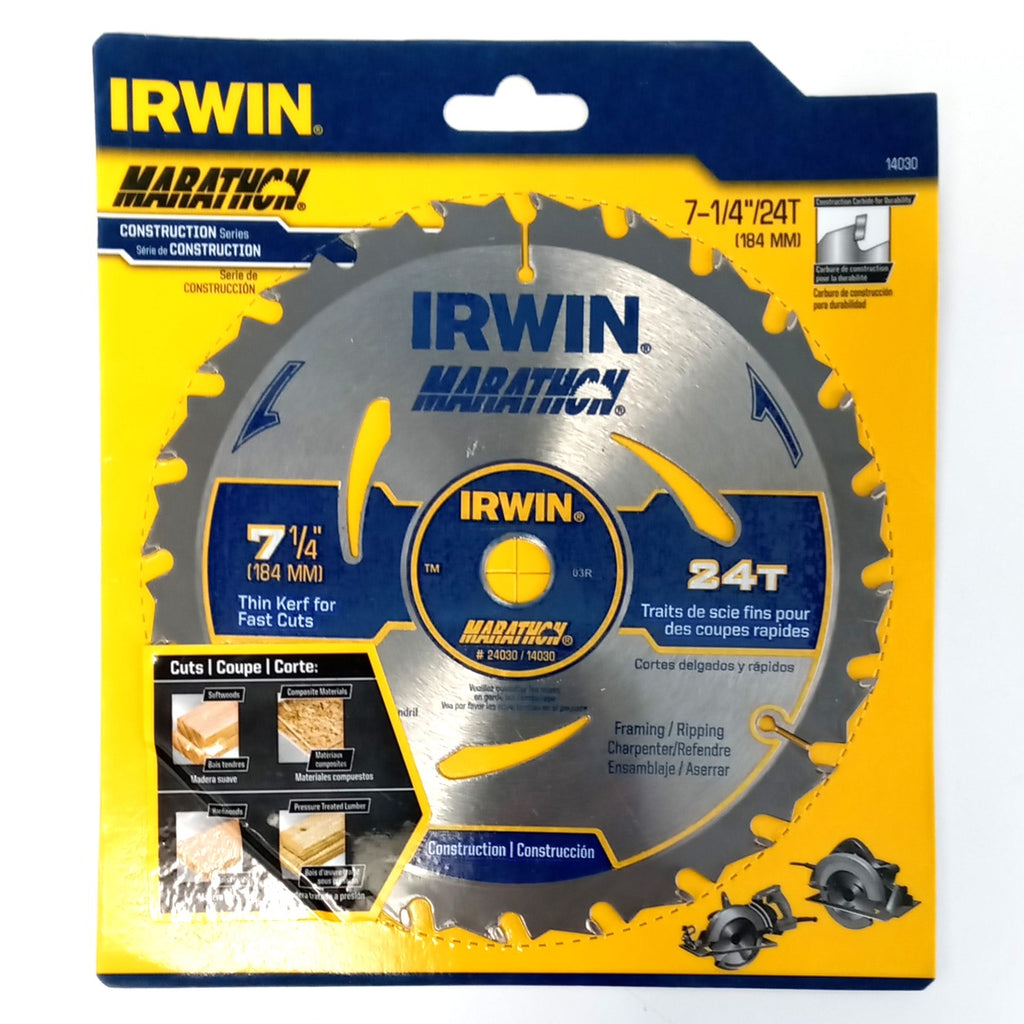 Irwin 24030 Marathon 7-1/4" 24 Tooth Framing Ripping Carbide Circular Saw Blade