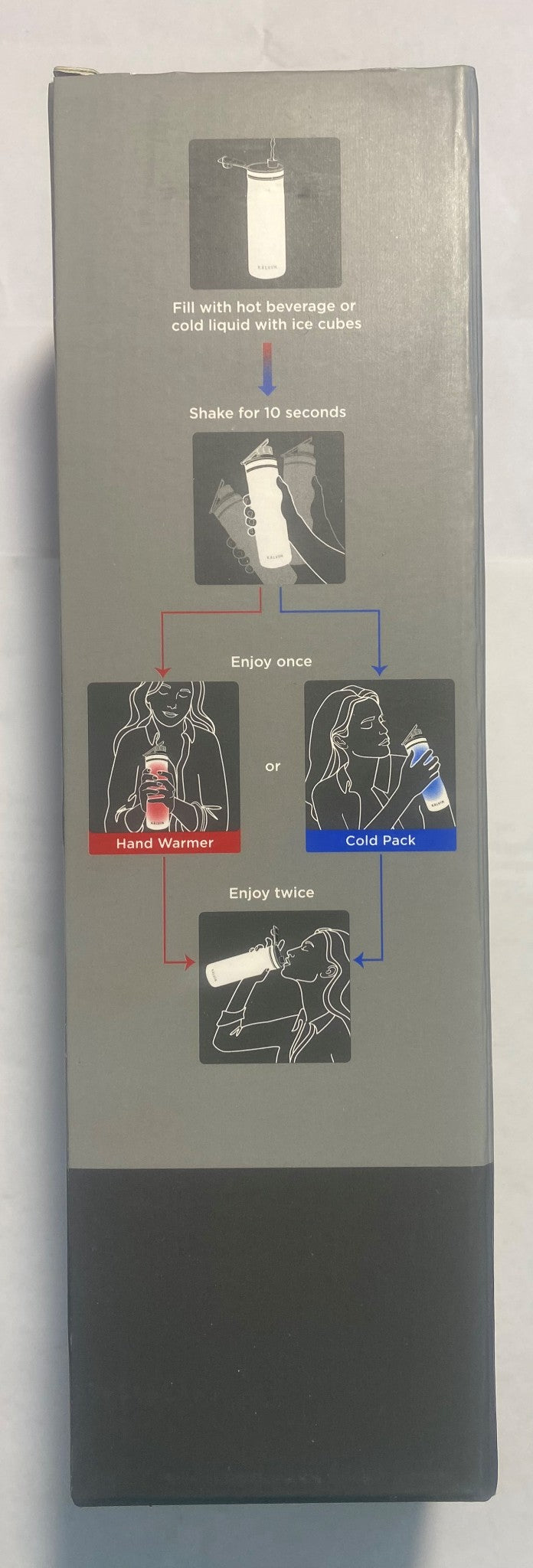 Energy Convertible Technology: The 14.2 fl oz Kälvin is a Hand warmer in the winter and cold pack in the summer! Simply shake your closed bottle up and down for five seconds to activate our special Converti-Technology and feel the temperature of your beverage on the outer wall of the bottle!