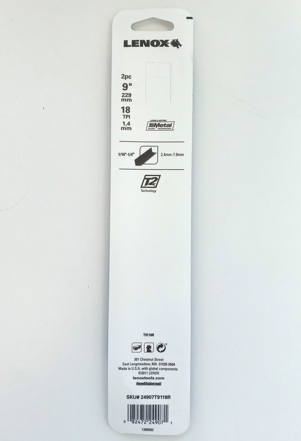 Lenox 24907T9118R 9" 18TPI Lazer Extreme Metal Cutting Recip Saw Blade 2pcs USA