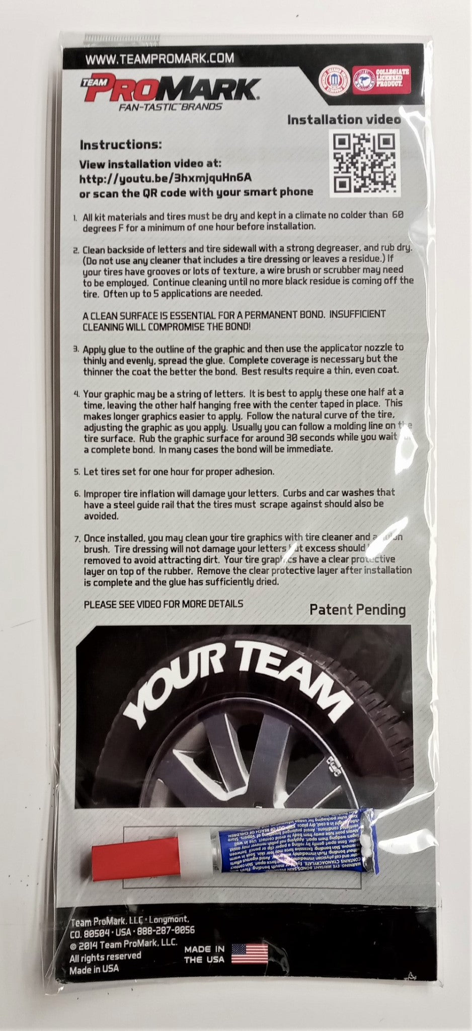Each Tire Tatz measure approximate 9in x 1.5in and will fit on any tire with a 2 inch sidewall.