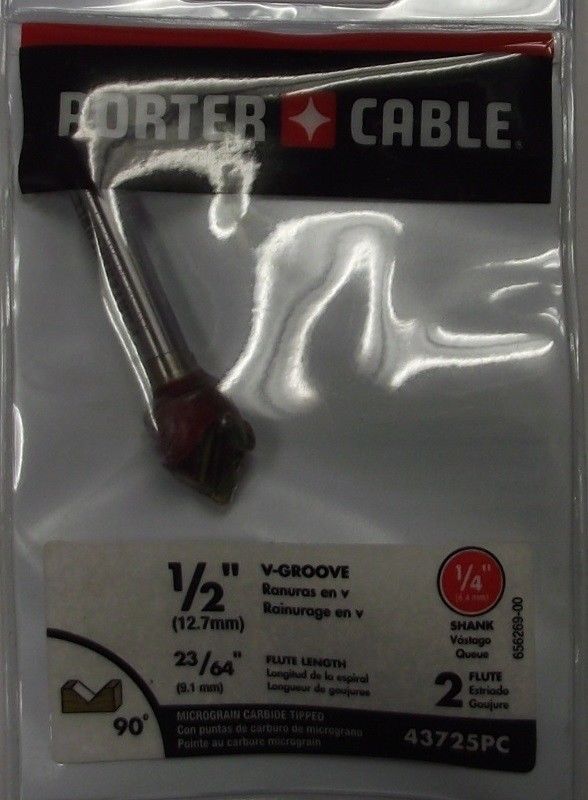 Size = cut width x flute length 43725PC 1/2 IN. V-GROOVE ROUTR BIT SIZE: 1/2" x 23/64"