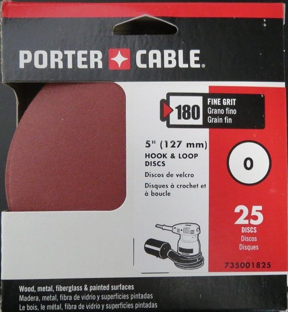 Porter Cable 735001825 5" H&L 180 Grit 0 Hole Sandpaper 25 Pack