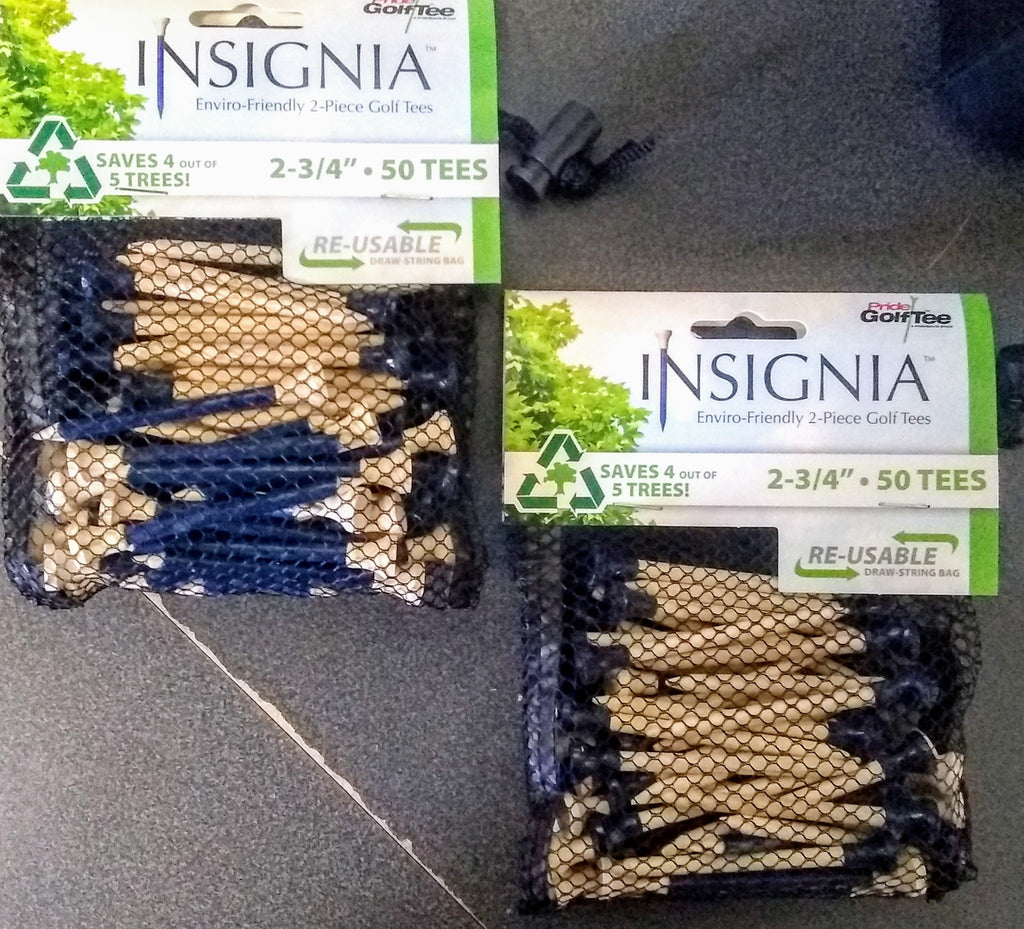 Pride 2345021 Insignia Golf Tee 2-3/4" Blue/Natural 2/50pc Drawstring Bags