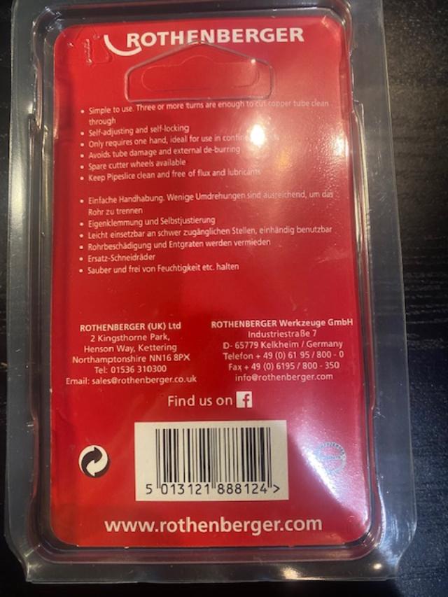 Rothenberger PIPESLICE Copper Pipe Tube Cutter 28mm 88812 United Kingdom