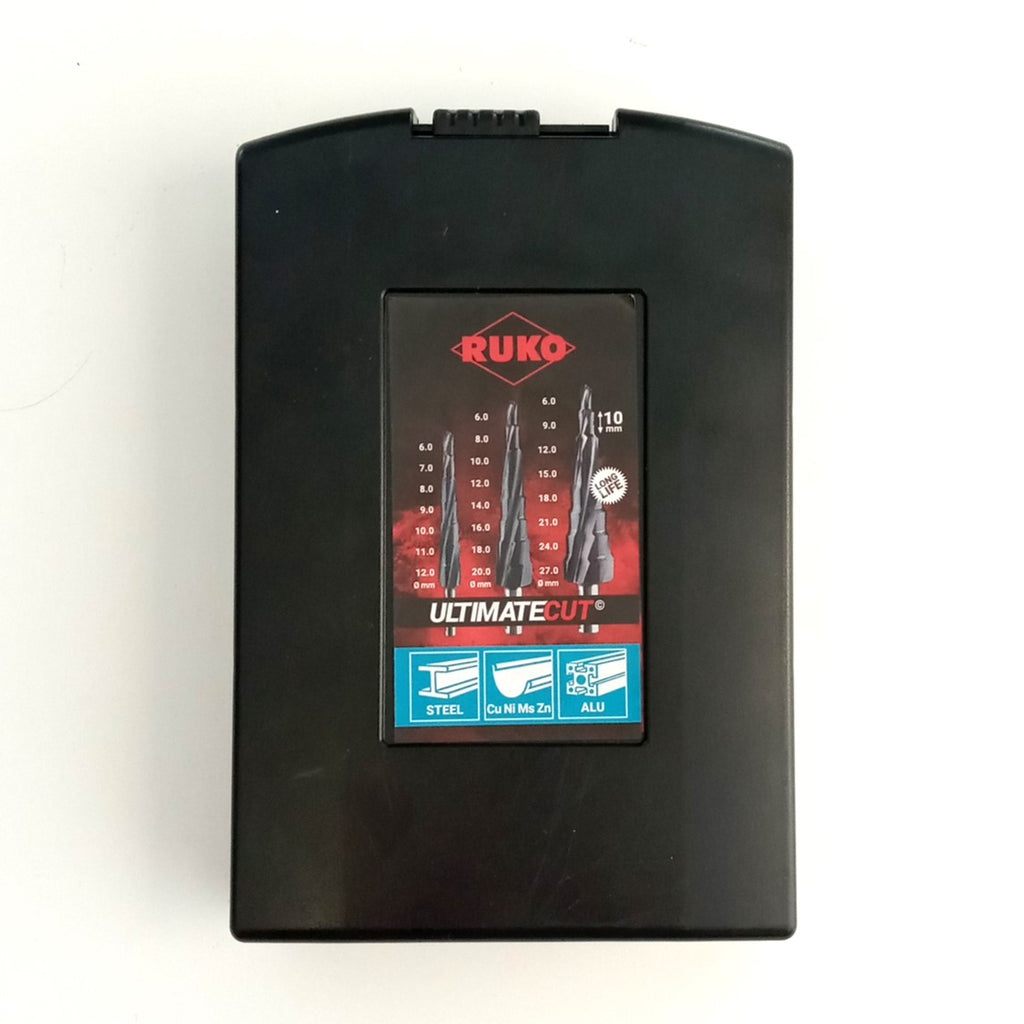RUKO 3-Pc Step Drill Set 6 - 12mm 6 - 20mm 6 - 27mm HSS 101087 PRO Germany