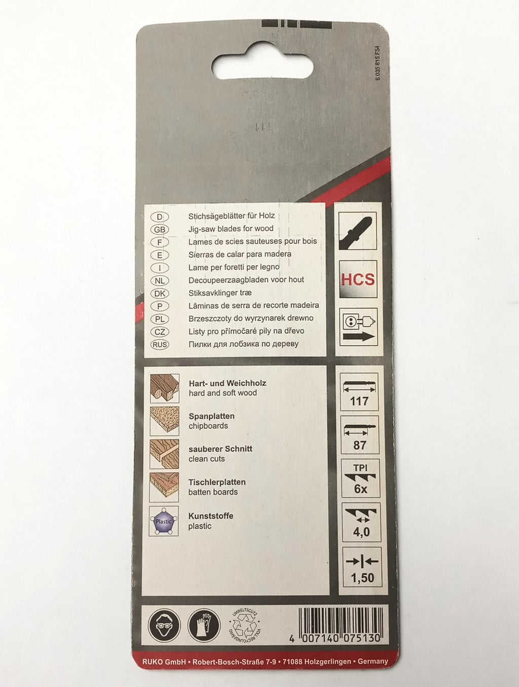 Ruko T-shank Jig-Saw Blades T-301D (5pcs) 3218023 Germany