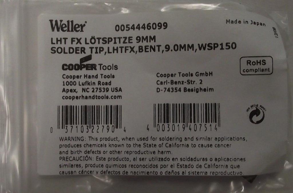 Weller 0054446099 Bent Chisel 9.0 mm Soldering Tip for WSP150 Soldering Pencil